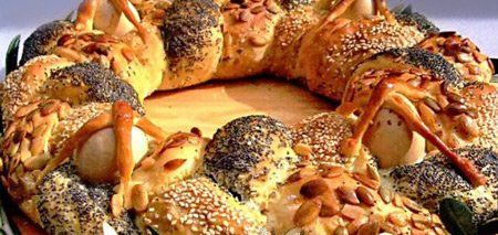 Пасхальный венок, который можно считать разновидностью традиционной русской кулебяки, это не только вкуснейшая праздничная закуска, но и чудесное украшение пасхального стола, наряду с крашенными яйцами, куличом и пасхой. Предлагаем рецепт пасхального венка с тройной начинкой.