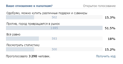 Опрос о том как отнеслись ростовчане к палаткам на Соборном провел популярный паблик "Ростов-на-Дону|Главный". Выяснилось, что из 3290 проголосовавших к этому часу, 51,5% не нравится идея торговых рядов на пешеходном переулке.