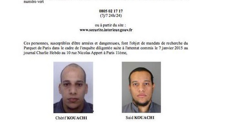 Теракт в Париже 7 01 2015 заставил власти Франции объявить о повышенном уровне опасности в Париже. Оперативная работа силовых структур уже принесла результаты. Полиция опубликовала снимки двоих подозреваемых в нападении на офис Charlie Hebdo. Это братья Кауши – Саид и Шериф. Братьям соответственно 32 и 34 года. Кауши уроженцы Алжира.