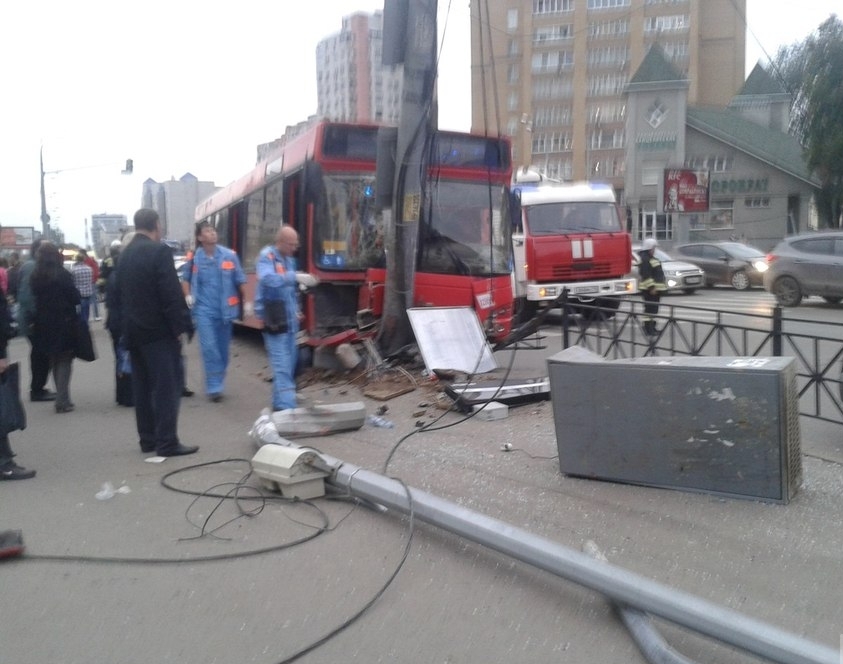 В Казани из-за осы, автобус врезался в столб, есть пострадавшие, в т.ч. дети + ФОТО с места ДТП