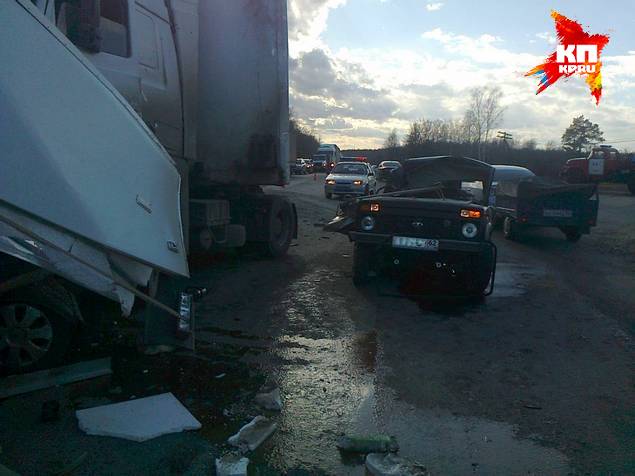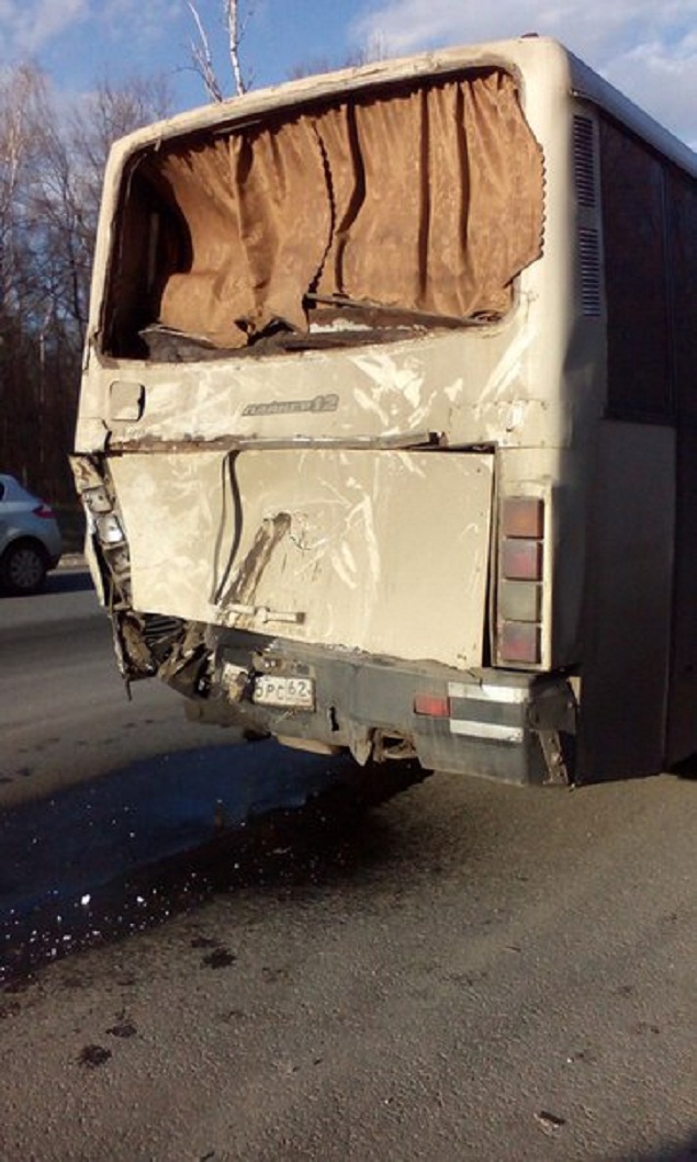 В пятницу, 24 апреля, водитель грузового автомобиля марки МАЗ, двигавшийся в районе 252-го километра трассы «Москва-Челябинск» (под Рязанью) врезался в впереди стоящий транспорт марки Нива, который, в свою очередь столкнулся с Газелью, а затем с рейсовым автобусом.