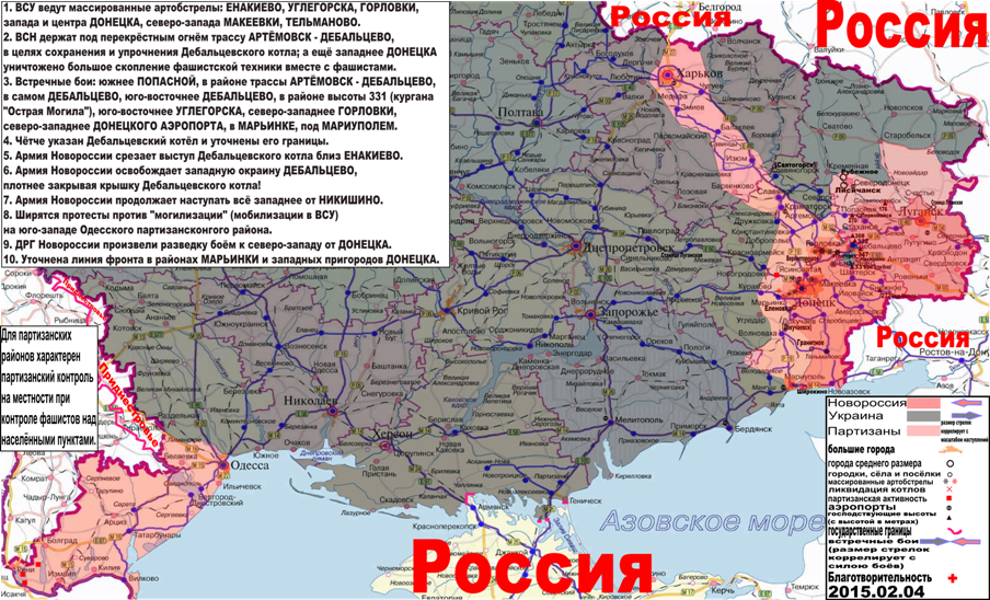Карта боевых действий в Новороссии 05 02 2015, обзор карты боевых действий в Новороссии 05 02 2015, Новороссия новости сегодня 05 02 2015: