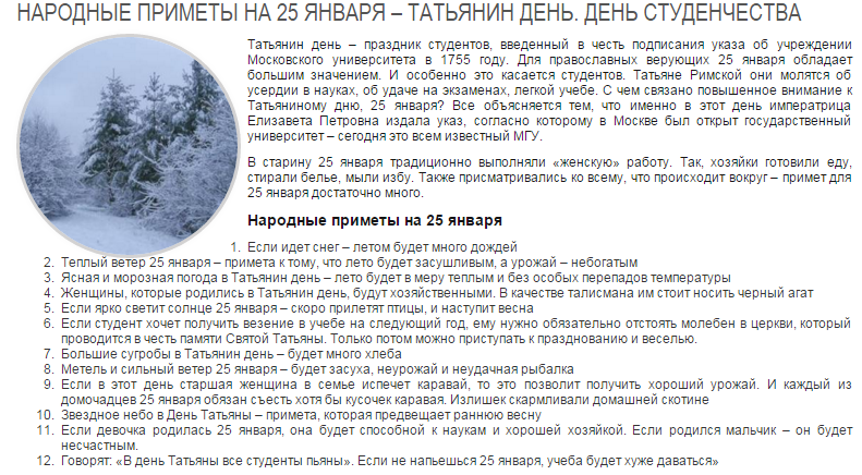 Народные приметы 25 января: День Татьяны – Бабий Кут.