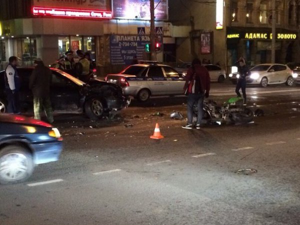 В центре Ростова столкнулись два мотоцикла и автомобиль