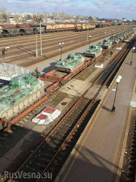 Так, к примеру, на херсонском ж/д вокзале была замечена колонна, перевозившая в сторону Донбасса десятки САУ, фото: