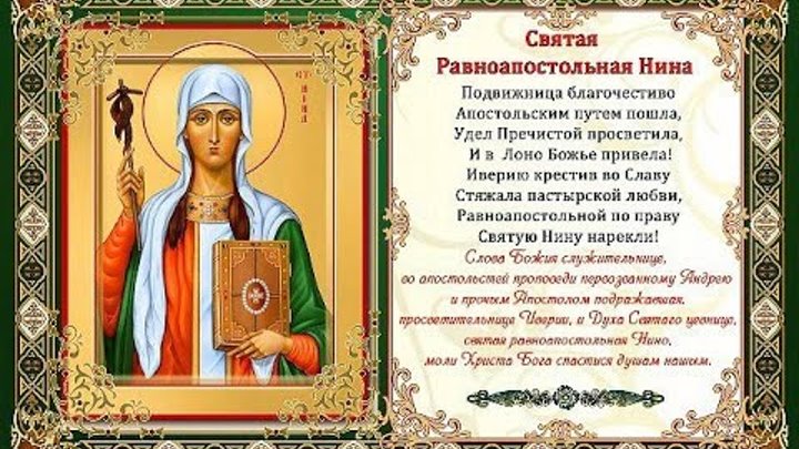 История гласит, что Нина жила в Иерусалиме в IV веке. Она была племянницей патриарха Ювеналия. Нина безгранично любила Христа и очень печалилась за людей, противившихся этой вере. Когда Нина была еще совсем юной, ее отец ушел в пустыню, а мать стала диаконисой. Поэтому ее воспитывала старица. Женщина поведала юной Нине невероятные истории о Грузии ( в то время это была Иверия). Нина была настолько впечатлена рассказами, что ей захотелось непременно повидать эту страну.