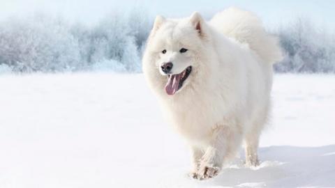 Эту породу называют “смеющийся ангел” из-за того, что на её морде всегда можно увидеть сияющую улыбку. В квартирах этим собакам будет плохо, так как они плохо переносят жару, ведь их белоснежная шерсть предназначена для защиты от холода в полярных широтах.