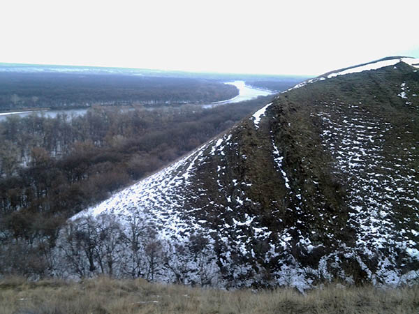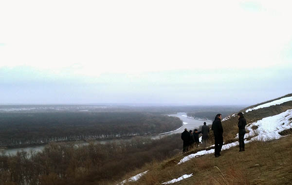 Ни дорог, ни электричества, только бескрайние просторы донской земли, вдруг открывающиеся с пятидесятиметрового обрыва на берегу Северского Донца. Когда Kia, закидывая себе на крышу комья грязи, наконец-то взбирается на этот край света, становится по-настоящему страшно. Вниз, к реке уходит крутой склон, поросший мелколесьем. Летом за шапкой листвы всей перспективы не увидишь. А сейчас - голые и прекрасные взгорья вокруг испуганно врываются в поле зрения непрошеных гостей. Ветер в истерике срывает с нас шарфы и капюшоны. Потрясенные открывшимися видами, люди замолкают.