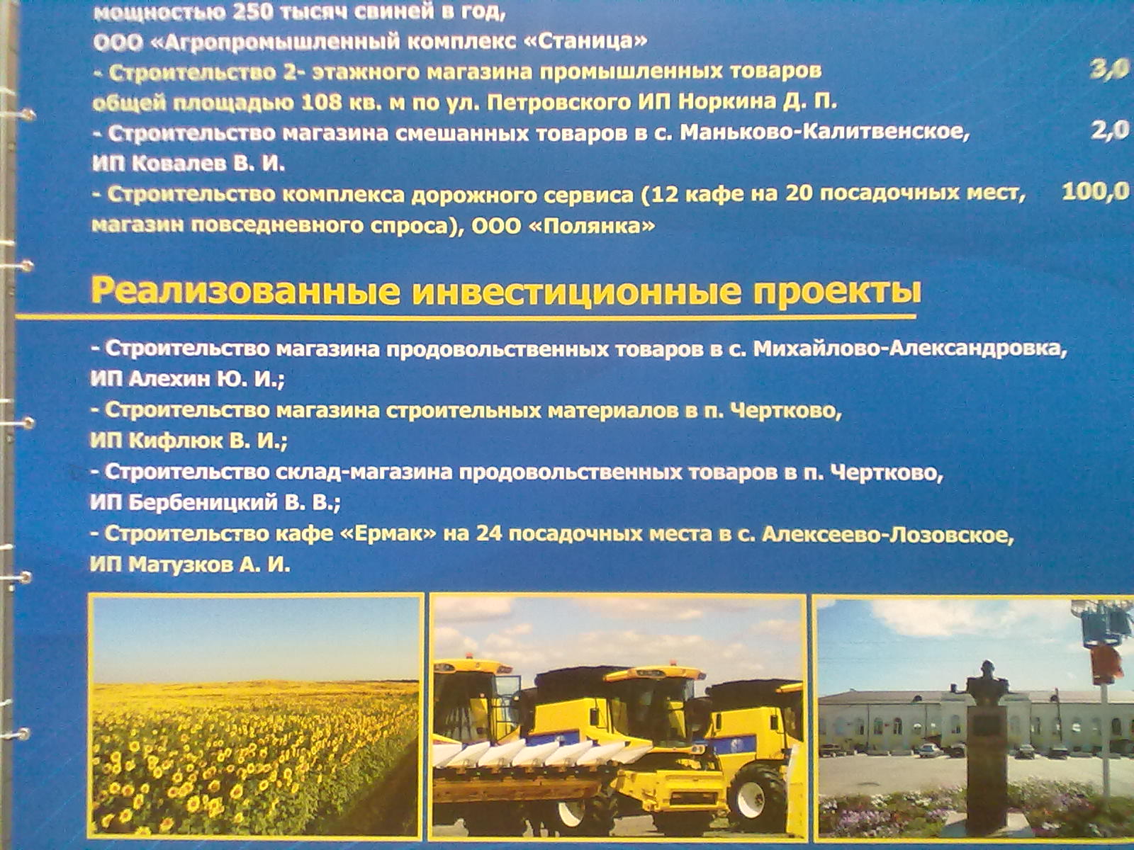 И тут же сама вспоминаю картины прошедшего Международного бизнес-форума на Дону. Где на стендах районов и городов в графе «инвестиции» гордо красовались надписи: «Строительство продуктового магазина».