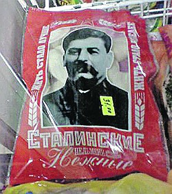 Среди напитков, использующих образ великого вождя, фигурирует и черный байховый чай, фасуемый на Украине. Что касается отечественных продуктов, то объединение "Айсберг" из поселка Ужовка Нижегородской области прославилось пельменями "Сталинские нежные". Рекламный слоган продукта гласит: "Жить стало лучше, жить стало веселее". Интересно, что один из девизов предприятия - "Верность лучшим традициям".