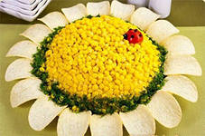 Оригинальным блюдом на столе можно считать и салат «Подсолнух», который внесет яркую лепту в ваш вечер.