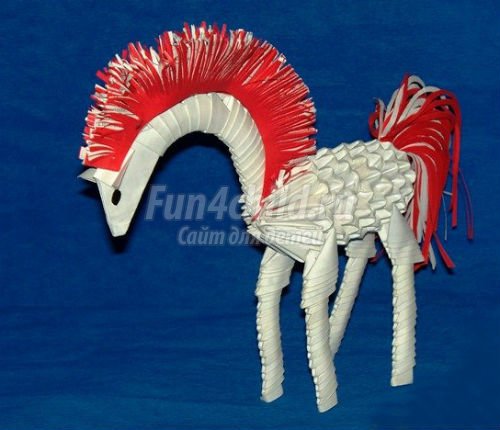 представляет собой бумажную поделку, в которой все детали сувенира легко складываются из небольших треугольников. Такая поделка не для новичков, очень сложная и кропотливая работа.
