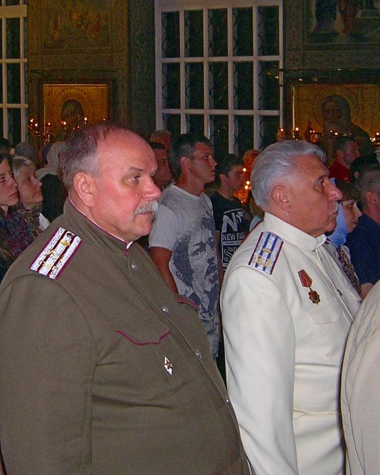 В пасхальной службе в храме Преполовения пятидесятницы, что на станице Гниловской, приняли участие Верховный атаман Союза казаков России П.Ф. Задорожный и его советник, экс-атаман СКР, местный уроженец – А.Г. Мартынов (в белом кителе). Корр «ЮФ» поговорил с указанными лицами.