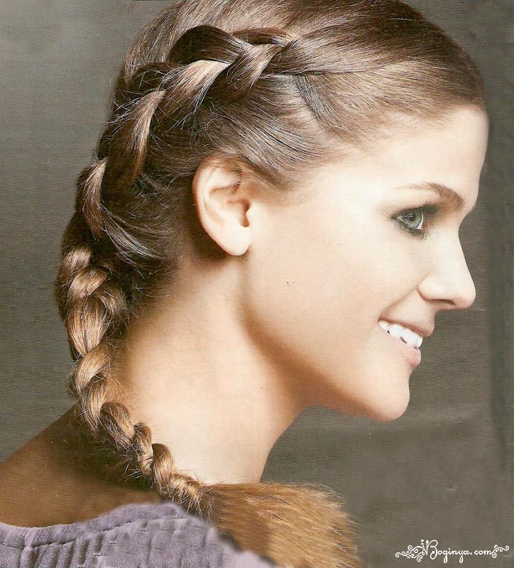 Ещё одна модная тенденция нынешнего сезона – это коса. Те, кто полагает, что косы – это непраздничный вариант, глубоко заблуждаются, ведь с их помощью можно создать удивительно красивую и элегантную прическу. Кроме того, косы подходят практически к любому платью – нужно лишь выбрать плетение. Французская коса, греческая, коса, обвитая вокруг головы, коса из жгутов…Выбор на самом деле велик.