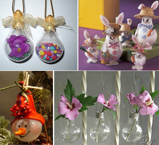 А ещё можно сделать игрушки своими руками из лампочек. Здесь есть два основных способа.