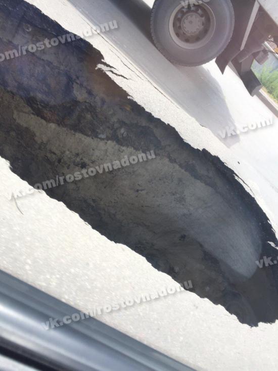 В Ростове на Вавилова образовалась огромная яма в асфальте, снова поработали «асфальтовые кроты»