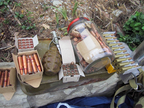 По информации МВД по ЮФО, после задержания в ходе обысков по месту жительства обоих было найдено и изъято более 40 наименований печатных изданий экстремистской направленности. И кроме того, целый арсенал: более 3000 штук автоматных и пулеметных патронов калибра 7,62 мм., более 500 штук патронов калибра 9 мм (для пистолета Макарова), около 100 штук патронов для винтовки 300 WinMag, более 400 штук патронов для травматического пистолета, 2 стеклянные емкости с порохом объемом по 3 литра каждая, две гранаты Ф-1, бронежилеты, каски, гладкоствольные охотничьи ружья, охотничьи карабины с оптическим прицелом, автоматический пистолет Стечкина, травматический пистолет, арбалет с полным комплектом стрел к нему и прибор бесшумной и беспламенной стрельбы.