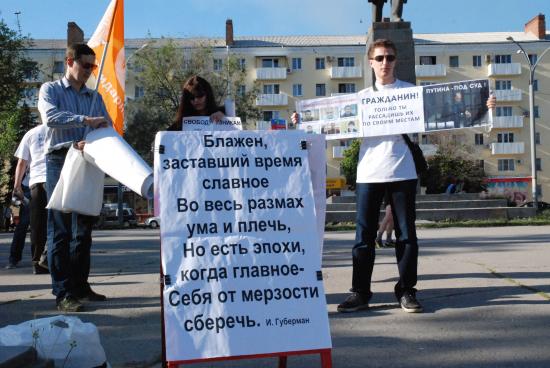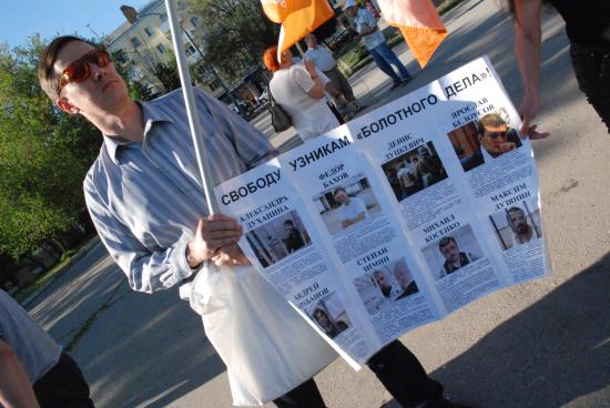 Сегодня в Ростове-на-Дону прошел пикет солидарности с узниками «болотного дела». Около 30 активистов оппозиционеров развернули лозунги и плакаты на площади им. Ленина.