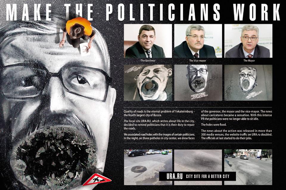 Наград жюри удостоился нашумевший рекламный проект «Заставь чиновников работать», который «Восход» делал для информагентства «Ура.ру» в 2012 году. Работа получила по две высшие награды в номинациях «PR» и «Promo&Activation» за нарисованные на асфальте изображения чиновников, ответственных за состояние дорог.