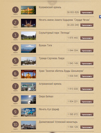 В любом случае, Коломнеский Кремль по результатам голосования занял первое место, мечеть "Сердце Чечни" - второе, хотя разница голосов невелика.