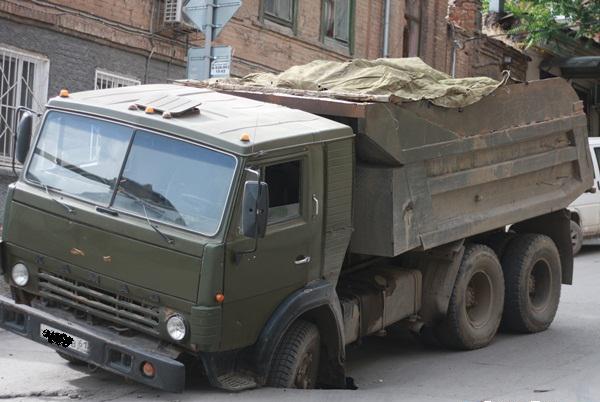 В Ростове-на-Дону 20-тонный грузовик провалился под асфальт + фото