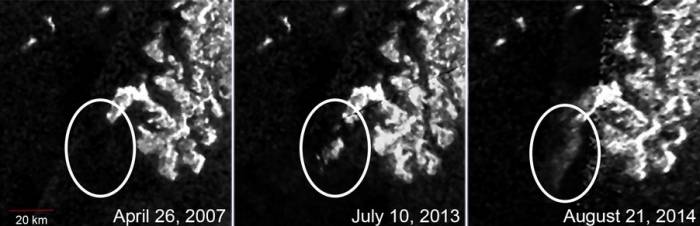 Неизвестный остров на Титане вновь обнаружил зонд «Кассини», изучающий климатические изменения на самом большом спутнике Сатурна. Последний раз этот остров ученые видели в прошлом году, при этом он был гораздо меньших размеров, чем сейчас.