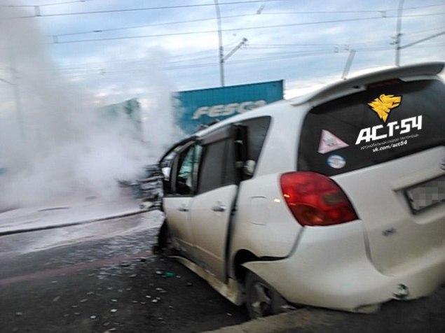 В Новосибирске на Горбатом мосту «Тойота» вспыхнула после ДТП