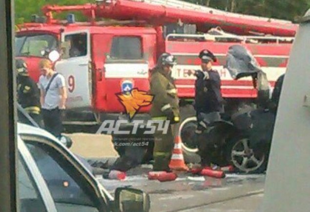 Во вторник 2 июня в Новосибирске на Горбатом мосту произошло столкновение двух автомобилей Toyota, в результате чего одна из них вспыхнула и загорелась.