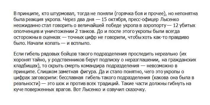 Как все было. 13 октября украинцы нанесли артудар и под его прикрытием провели атаку на старый терминал. Однако, там были неожиданно встречены танками ополченцев. Танкисты первыми открыли огонь, за ними ополченцы из автоматов. Все атакующие были уничтожены. У ополченцев потерь не было вообще.