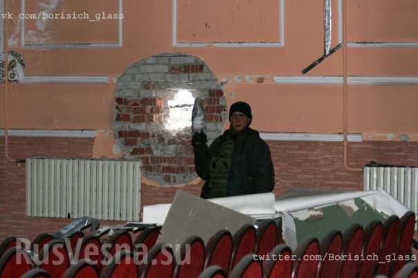 Никишино - 29.11.2014. Дворец культуры, которые обстреливался ВСУ из всего что у них есть: минометы, танки и артиллерия.