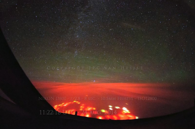 Пилот голландского Боинга-747, который следовал из Гонконга в Анкоридж 24 августа выложил в интернет фото с аномальным явлением.