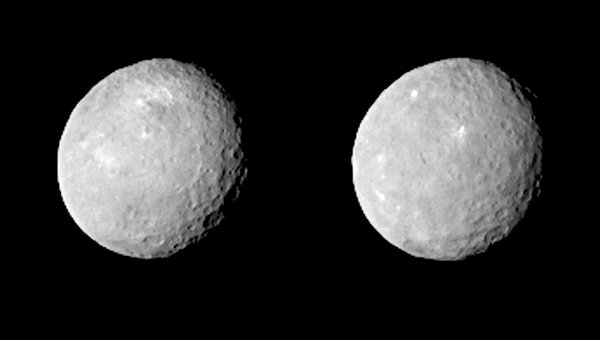 Снимки были сделаны камерами зонда 12 февраля, с расстояния в 83 тыс. км от поверхности Цереры. На снимках карликовой планеты учёные смогли рассмотреть большое количество кратеров, а также загадочные белые пятна.