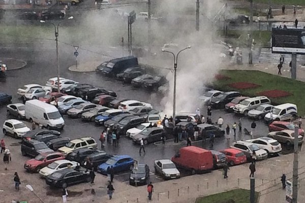 На автостоянке в Петербурге водитель внедорожника протаранил 5 машин, спровоцировав массовое ДТП, и загорелся.