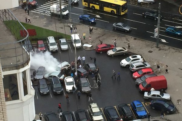 В Петербурге внедорожник загорелся, протаранив 5 машин на стоянке