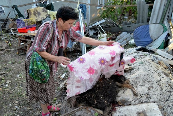 Сводка Стрелкова, Новая Кондрашовка (Луганская народна республика): обстрел детского сада, кругом разрушения, убиты 2 девушки, одной из них осколок попал прямо в шею.
