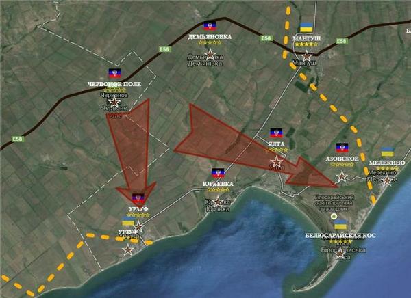 Заняты поселки Володарское, Ялта, Азовское, Юрьевка. Идут бои за Урзуф.