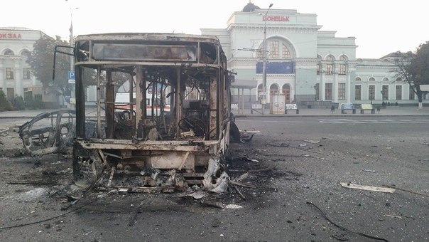 "Последствия вечернего обстрела ж/д вокзала Донецка