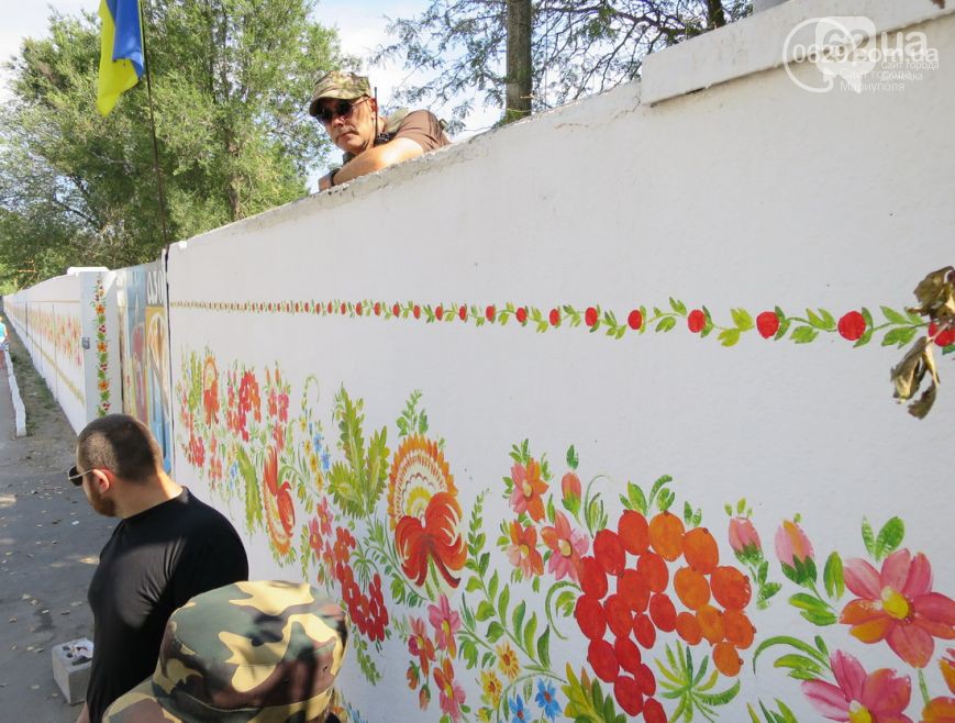 Ранее самый длинный узор в таком жанре был в селе Петриковка, но забор бывшей дачи Виктора Януковича длиннее на 10 метров, что позволит ему попасть в украинскую Книгу рекордов. Забор красили белой краской бойцы батальона, а расписала художница Ольга Черемушкина.