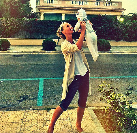Через меся после рождения малыша окрестили в Александро-Невской лавре, затем новорожденный с матерью уехал в солнечную Барселону, где Пьеха арендует квартиру на берегу моря.