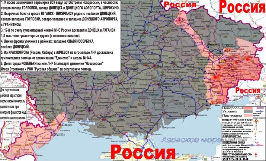 [[nodetitle:Новороссия, сводки от ополчения Новороссии, карта боевых действий в Новороссии: Донецк, Новоазовск, Счастье|Новости Новороссии сейчас 05 03 15, Новороссия последние новости от ополченцев 05 03 15, ЛНР и ДНР сегодня новости последнего часа карта боевых действий, Новороссия сегодня новости последнего часа, перемирие на Украине, новости и ситуация ДНР и ЛНР сегодня 05 03 15, Украина сегодня ополчение новости 05 03 15, новости Украины сегодня за последний час 05 03 15:]]