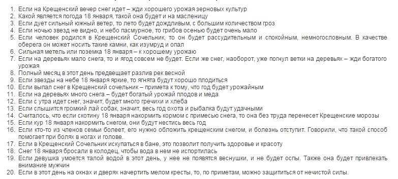 Народные приметы 18 января: Крещенский сочельник. День строгого поста, «голодный». Едят овощи, пресные лепешки, блины, кутья.
