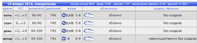 Погода в Ростове 18 января: утром температура составит 0…2°, осадков не ожидается, облачно. Днём температура немного поднимется – до +2…+4°, без осадков и облачно. Вечером термометр покажет +1…+3°, облачно.