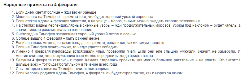 Народные приметы 4 февраля: День Тимофея-полузимника.
