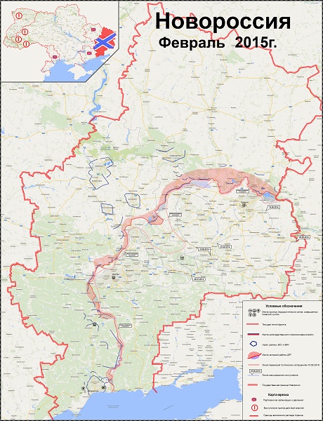 Обзор карты боевых действий в Новороссии 25 02 2015: