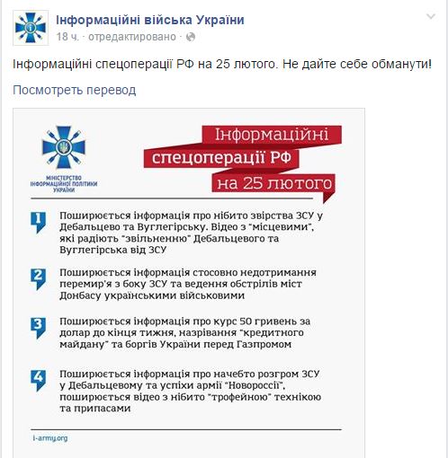 Дебальцево сегодня новости последнего часа видео 26 02 2015 КОТЕЛ сейчас; Чернухино, ЛНР новости: информационные войска Украины работают полным ходом: по официальным данным ведомства: нарушение перемирия силовиками, обвал украинской гривны, сообщения в российских СМИ об операции в Дебальцево – все это спецоперация России, ФОТО: