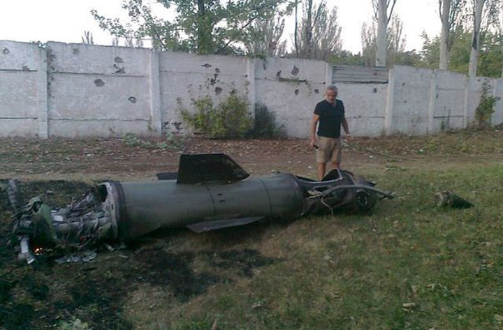 ДНР и ЛНР, новсти на 05.09.2014: уничтожено место, где был установлен ТРК «Точка-У» и с которого велся обстрел. Именно такой снаряд – баллистическая ракета прилетел в Харцызск (см.фото ниже).