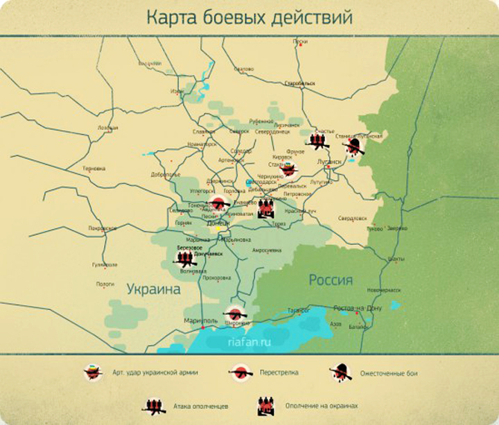 Бои в Новороссии, карта ополчения (актуальная на сегодня, 19.1.2014)