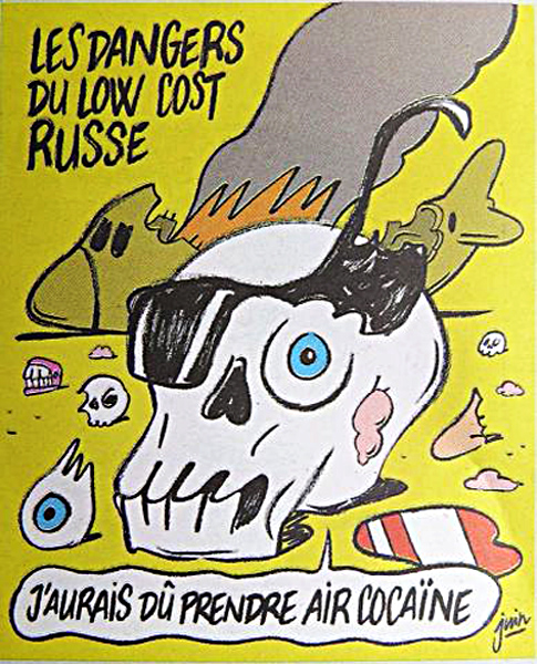 Печально известный журнал Charlie Hebdo (Франция) опубликовал новые карикатуры. На этот раз предметом осмеяния стала авиакатастрофа лайнера А321 России на Синайском полуострове.