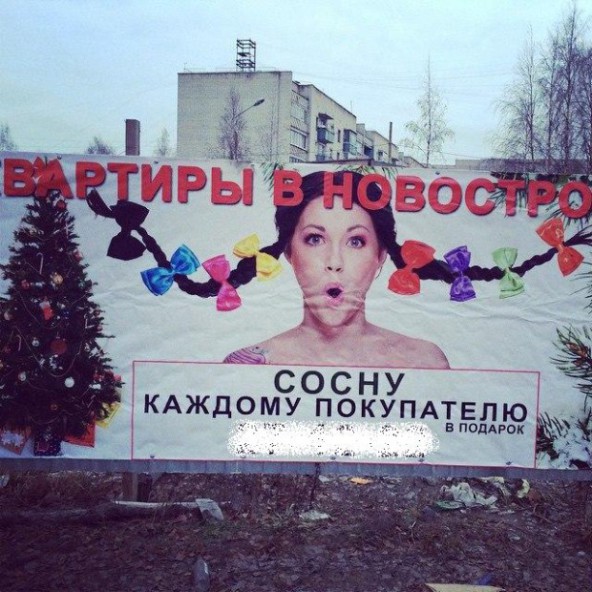 Баннер, создатели которого, занимаются продажей квартир в новостройках, уверены, что реклама хорошая и не двусмысленная, как решили сотрудники УФАС Карелии, обязавшие компанию снять его на следующий день.