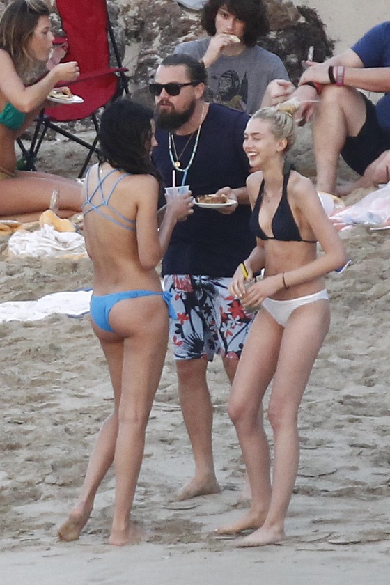Как это ему свойственно, Лео ди Каприо проводит время в компании красоток. Правда, как заметили папарацци, сам актер не может похвастаться стройными формами - небольшой животик на пляже спрятать не удается.